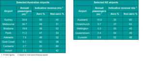 Every airport has a unique revenue mix – depending on the airport’s traffic profile, competitive dynamics, catchment area etc. A snapshot of major Australian and New Zealand airports is shown below: