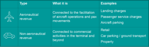 At the simplest level, airport revenue is delineated between aeronautical and non-aeronautical activities.